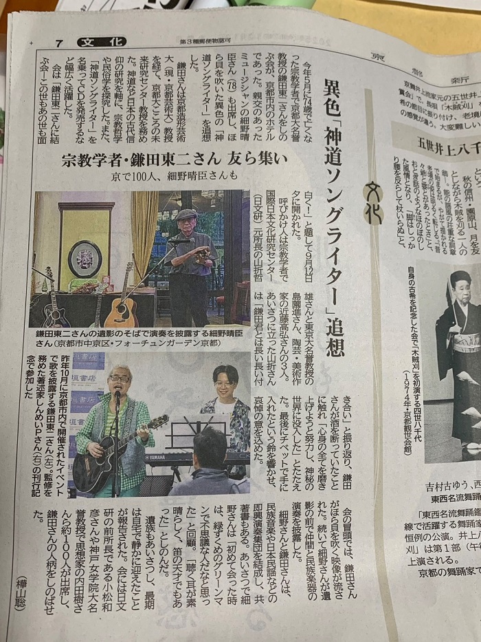2025年10月16日 棚次正和:RE:異色「神道ソングライター」追想(10月13日京都新聞) ▲目次3